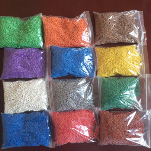 彩色顆粒大小徑約2-4mm,使用運(yùn)動場專用PU鋪設(shè),并在其表面鋪撒膠粒而成。合成面層具有高能量的物理彈性及高度的抗耐磨性,并且能抵御各類極端氣候狀況:長時間的日照、雨季及冰凍氣候。適用于比賽型專業(yè)場館,體育場或體育中心等場地。